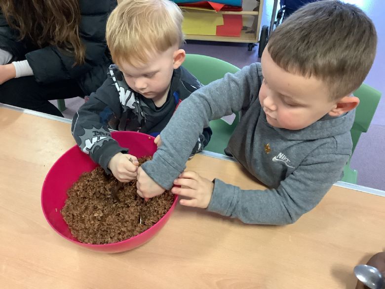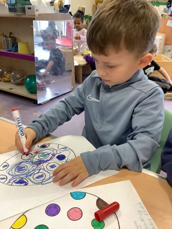 Maths: We explore colours, numbers, patterns, and shapes, using songs and everyday objects to bring the concepts to life! Along with the rest of the school, we follow the 'Master the Curriculum,' which allows for a consistent approach.