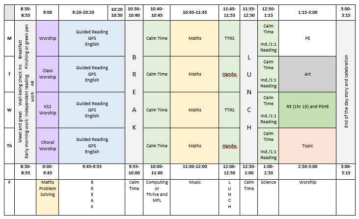 Our Weekly Timetable:
