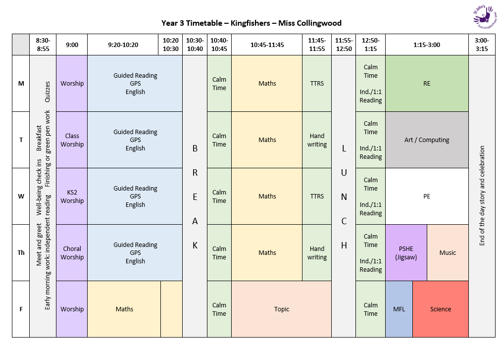 Hi! My name is Miss Collingwood and I have taught at St John's since it first opened. I started my teaching career 41 years ago and have taught children from nursery age right up to year 6. I am also a qualified Reading Recovery teacher. The teaching profession has seen many changes over the years but my passion for helping children to learn is as strong as ever.
