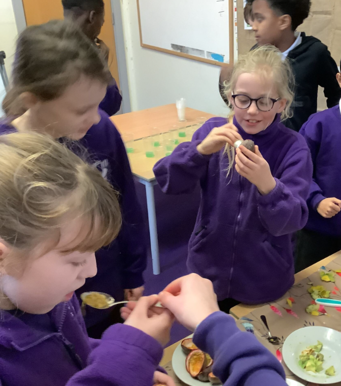 To start our South America topic, we learned about foods that come from the continent and tried some different fruits from there- we then voted on our favourite! We also learned some phrases in Spanish, used maps to locate various countries and made flags.