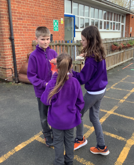 We were bees! After learning the parts of a flower, we made flower models and used them to act out the stages of pollination, thinking about where this process fits in the life cycle of flowers.