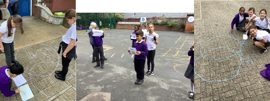 Outdoor learning: Kestrels have enjoyed learning outdoor in Science and Maths. In Maths, they drew Venn diagrams for common factors and common multiples in chalk on the playground to consolidate their times tables knowledge. In Science, Kestrel class turned themselves into the Solar System to show their understanding of the planets’ positions and orbits around the Sun.