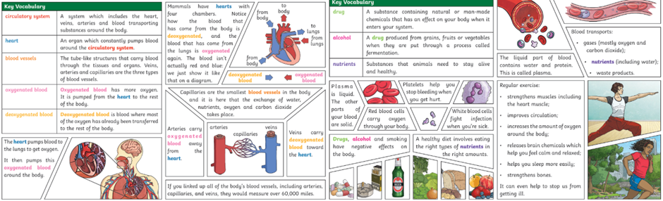 In science, we will be studying ‘Animals Including Humans’. This will include learning about the main organs and the importance of a healthy lifestyle. The children will be learning about the effect of exercise on the body, and the effects of harmful substances. They will be making blood and carrying out investigations to answer key questions.