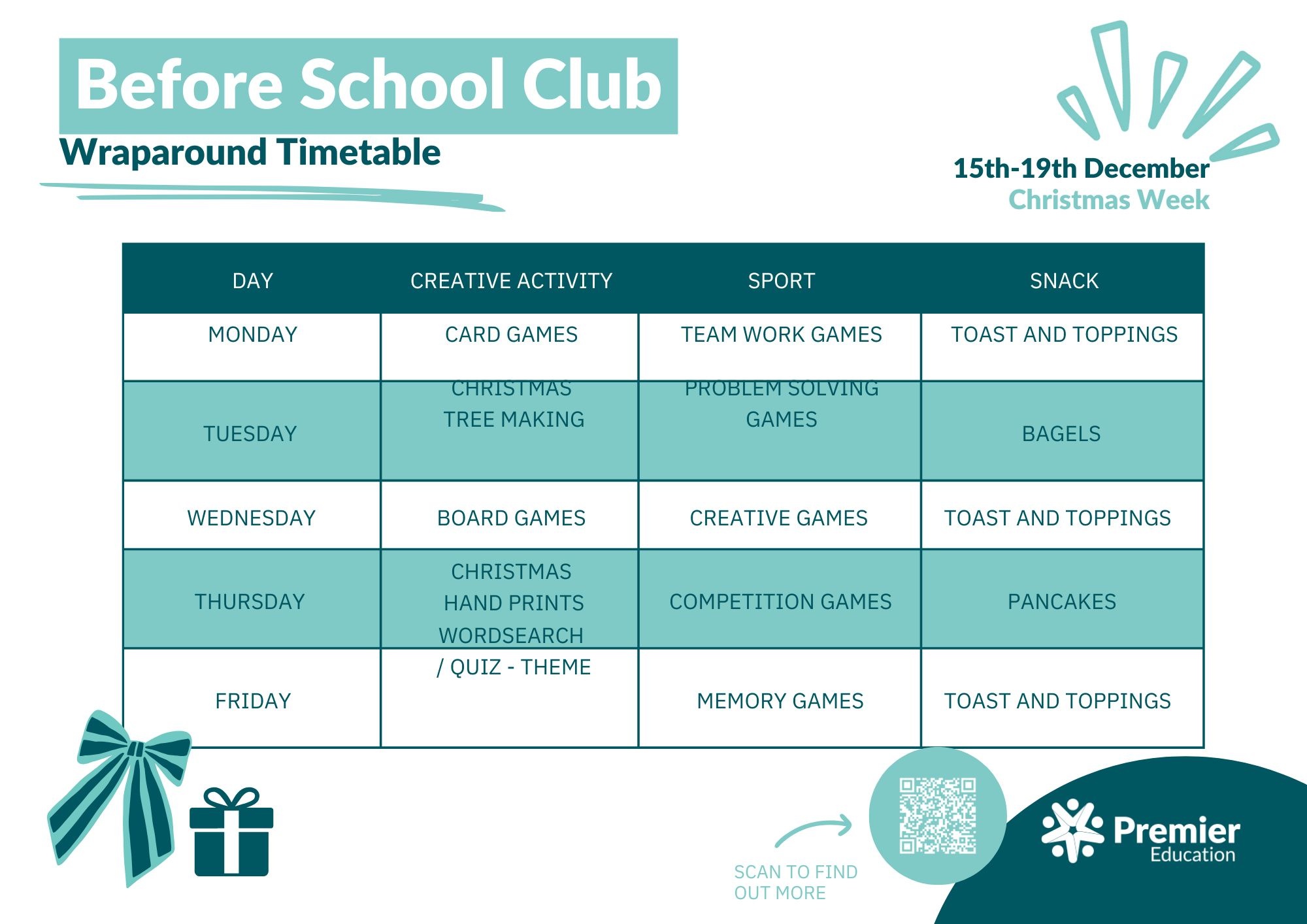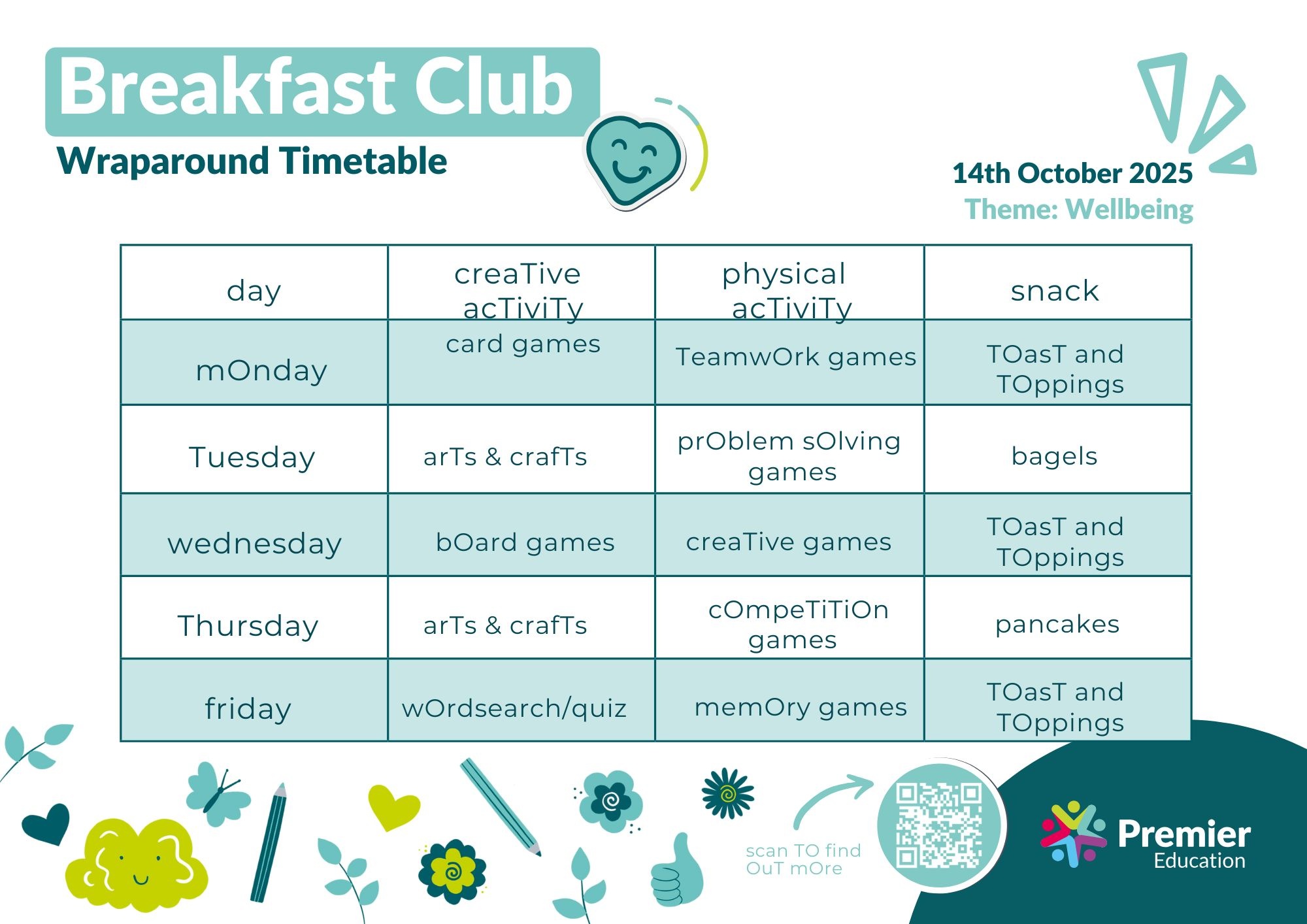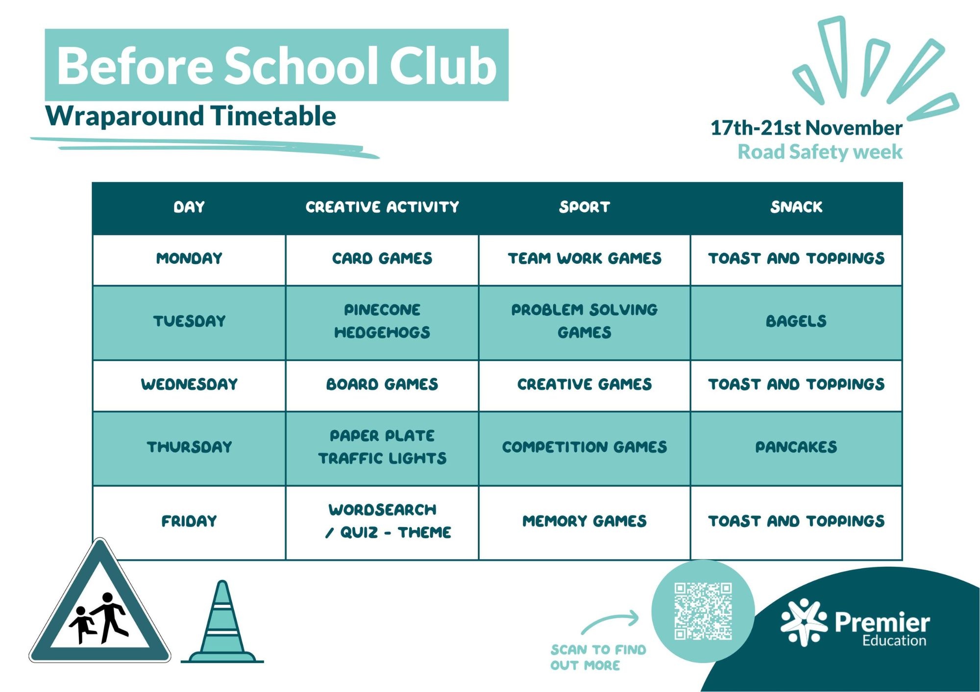 Our Breakfast and After-School clubs are provided by Premier Education, who have provided the following information.